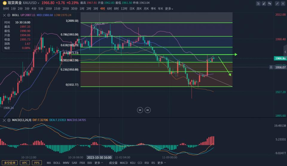 技术形态方面、昨晚反抽承压高点刚好位于1971前高压制形成双顶,也是从2009下跌至1931反抽黄金分割线50%回撤位,整体形态并未构建形成反转,趋势仍然是空。虽然说昨日晚间承压,回落幅度有限,凌晨围绕1961上方横盘,短期形态表现比较强。但关键双顶压制,仍可博弈空。那么下方关键点就是凌晨回踩低点1961附近,一旦破低日内延续回撤的可能性比较大,大概率继续测试1954附近支撑。日内回踩幅度越大,上升破高的概率就越低。如果日内意外突破双顶,日内还是看震荡,空单回撤调仓,上方1979-80回撤0.618位置仍需空。