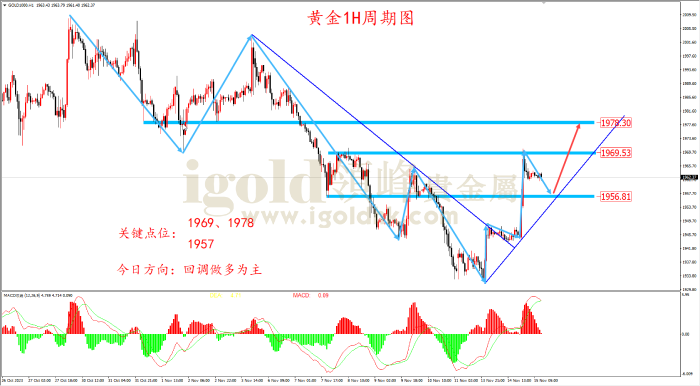 多单:1957.0附近尝试做多,止损1952.0,目标1963.0、1978.0附近。
