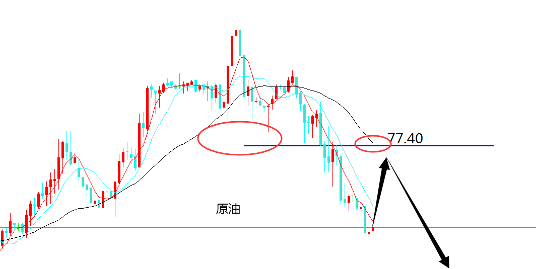 原油-----77.40附近空,目标76.00-74.00