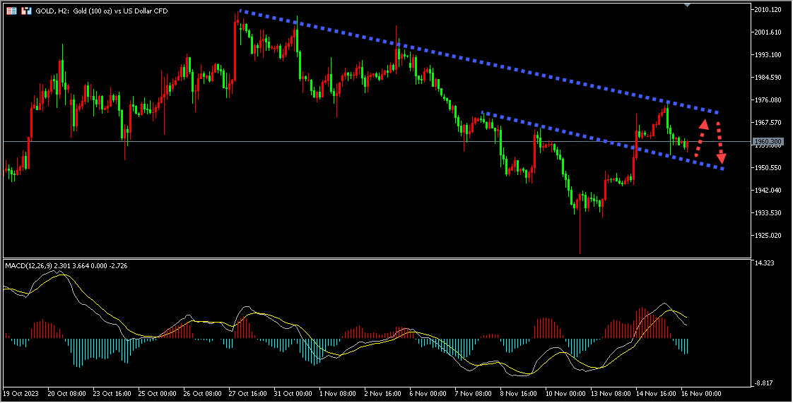 首先,美元和美国国债收益率的反弹对黄金产生了一定的压力。虽然黄金被认为是一种通胀对冲工具,但是美元和美国国债收益率的走强通常会削弱黄金的吸引力,因为黄金在美元升值时相对昂贵,减少了投资者对黄金的需求。此外,美国国债收益率上升也会使投资者更倾向于投资债券而非黄金。因此,美元和美债收益率的走势将继续对黄金价格产生影响。然而最新的美国经济数据显示通胀正在降温。10月份的生产者价格指数下降0.5%,不及预期,年增长率也从2.2%下降至1.3%。此外,核心生产者价格指数也低于预期。这些数据与之前发布的消费者价格指数数据一致,表明美国的通胀压力有所减弱。另外,零售销售数据也显示美国经济增长疲弱。10月份零售销售下降0.1%,远低于预期的0.3%。经济数据的疲软加强了市场对美联储降息预期的预期。投资者目前正转向对美联储何时开始降息的预期,并且预计美联储在12月会加息。如果美联储决定推迟加息或者开始降息,这将为黄金提供更多动能。黄金价格受到多个因素的影响。虽然美元和美债收益率的反弹对黄金构成了一定压力,但通胀的降温以及美国经济数据的疲软有望支撑黄金价格。此外,投资者对美联储降息的预期也可能为黄金提供一定的动能。然而,市场对美联储即将发布的数据和决议的反应将对黄金价格产生重要影响。