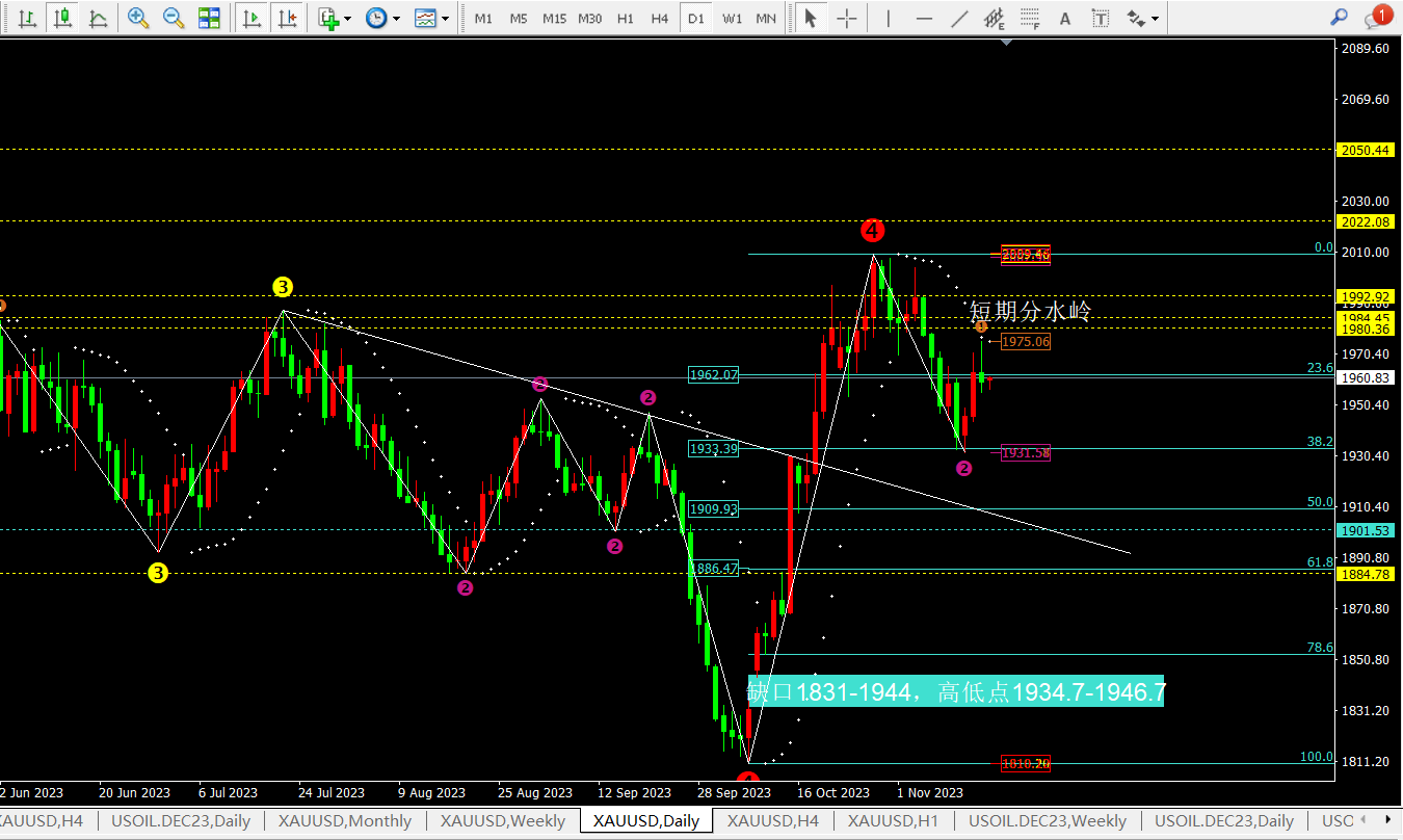 综合而言:黄金日内将以先反弹上行试探1973-75压制,如果不能突破将再次下跌。