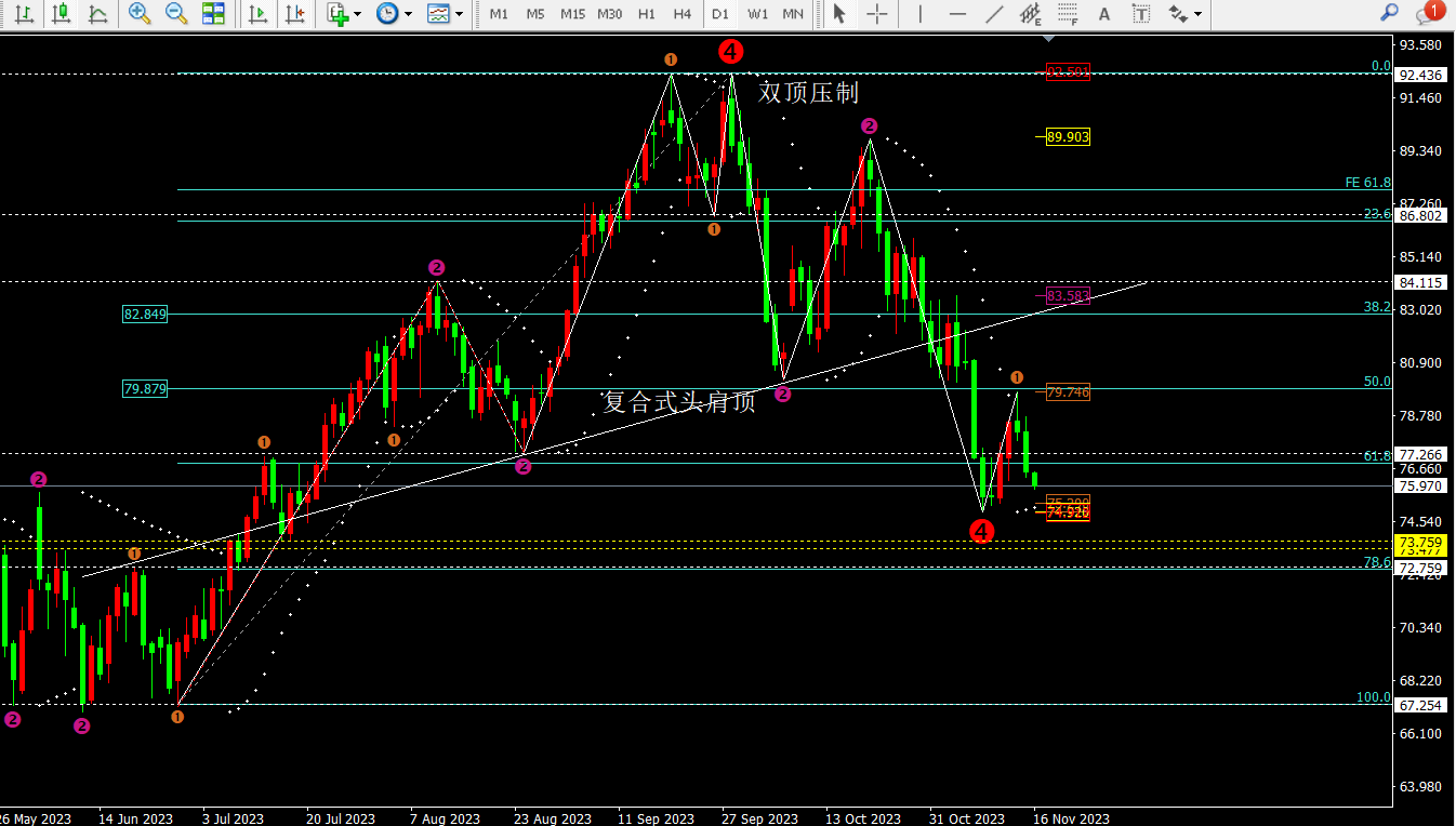 【1】75.1-3附近多,损74.6即可,目标看76-77-77.5