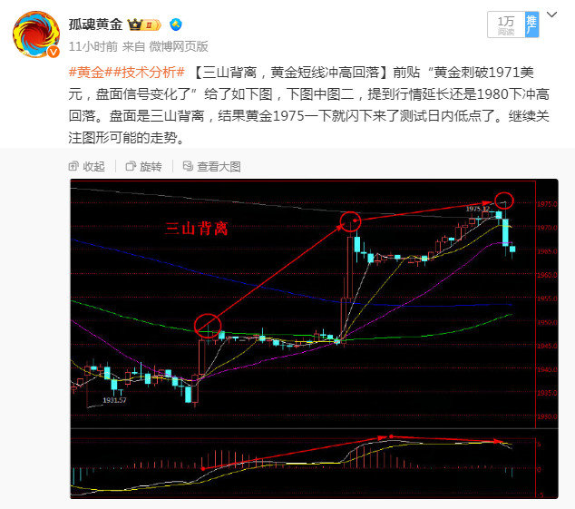 【孤魂黄金】三山背离黄金回落,关注区间上下反复折腾走势