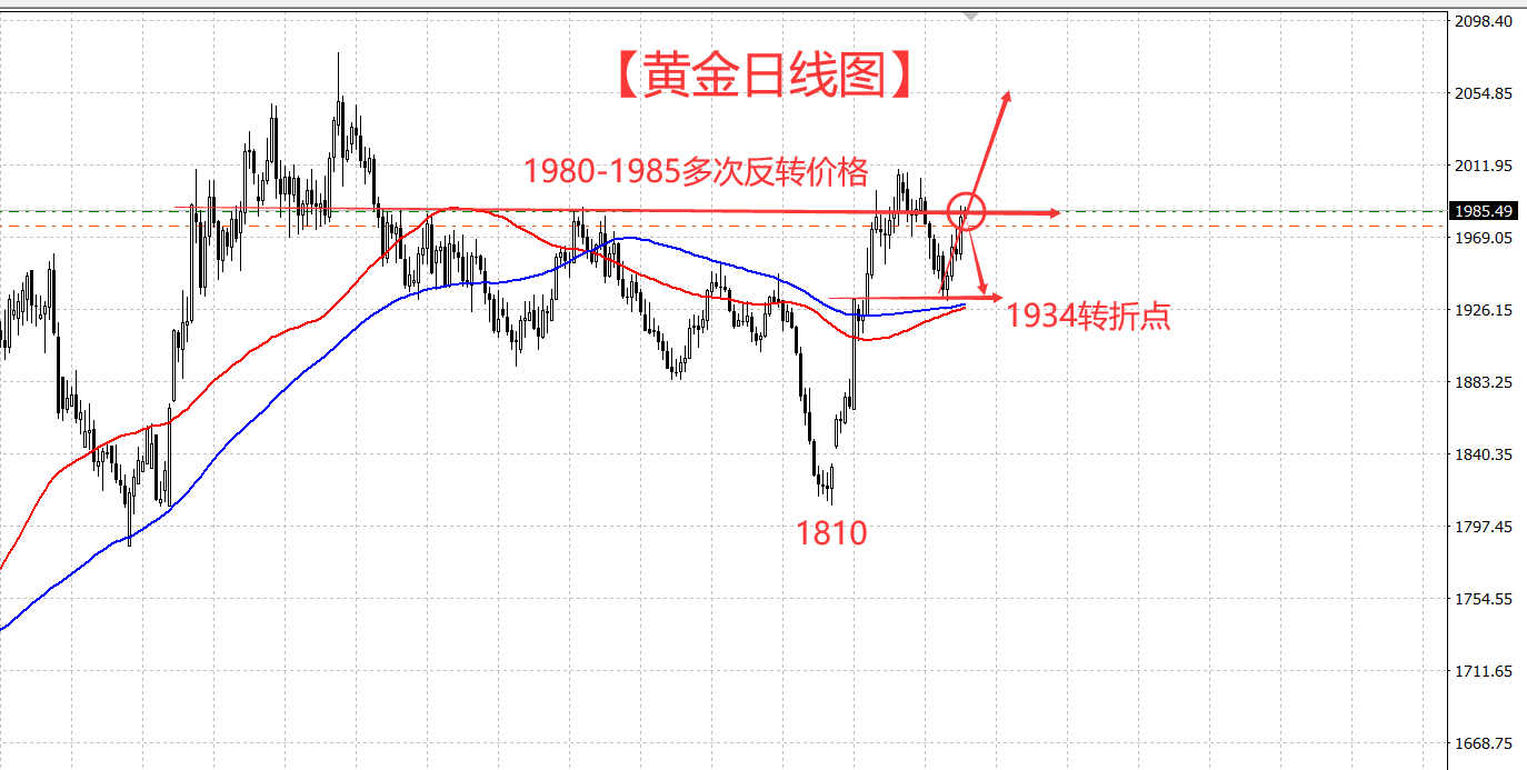 黄金自从1934反转以来,突破1948,改变了短期的看跌趋势,因此昨天也是让大家跟进的多单,当然昨天黄金是涨上来了,一下直接顶到了1987,不过我在1975这个前高就已经全出了,空一直没敢参与,就为了防黄金这一手冲高,那么现在的黄金大趋势到底变没变呢?