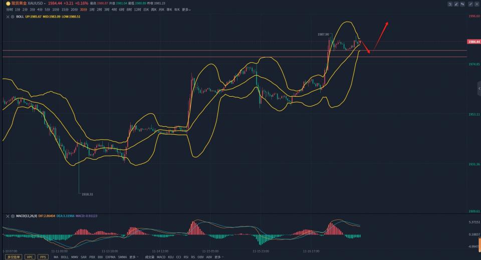 记得在本周初就给大家说过,决定黄金未来一段时间的方向就是CPI数据,在周二数据昨晚公布数据后,这就决定美联储未来暂停加息的举措,那么黄金价格势必是要上涨的。做交易,一定是从宏观上面去判断大的方向,再从技术角度去确定进场点位。昨晚公布的初请失业金再度助力黄金价格上涨,数据显示劳动力市场走软,再加上近期通胀数据,强化了美联储不太可能进一步加息的观点。这些不利的美国经济数据加剧了美国国债的下跌,从而导致黄金价格飙升。