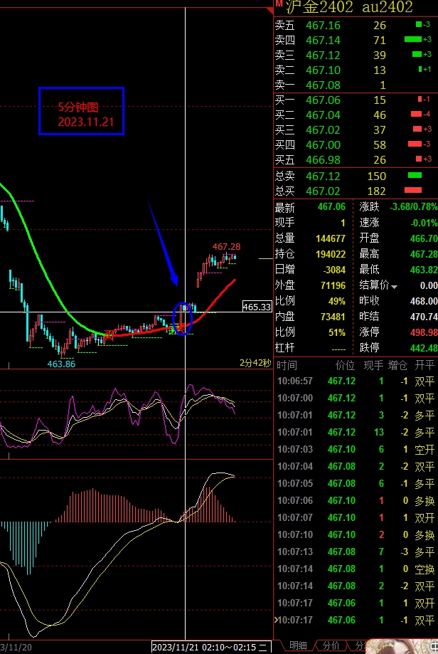 沪金:昨日我们的指标显示超短线给出的买入信号价格如期上行,今日我们的指标显示超短线给出的依旧是买入信号,关注区间在471-465之间,大区间关注在473-463一线.