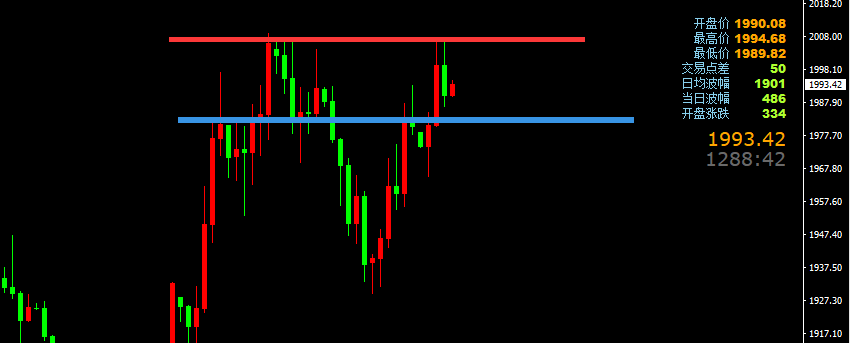 黄金走势上看,上个交易日看好早盘回落之后二次冲高再回落,早盘黄金回踩1995一线如期企稳之后再度拉伸,欧盘刷新高点触及2007一线再度如期承压回落,美盘二次拉高2003一线没能破高如期回落最低触及1986附近,基本是兑现了我们昨天的思路,只是多单稍微踏空了一些比较可惜,短期来看黄金多次冲击2007/09高点不破,有初步见顶的迹象,但是缺乏力度,大概率会走反复调整之后再寻找破位契机了,上方关注逐步下移的2003/05一线压力,下方关注1978/80强支撑。