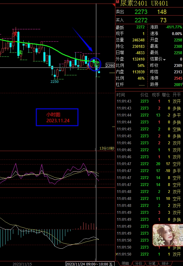 尿素2401:基本面来看今年淡储规则略微修改,时间线延后,减少了11月和12月的采购压力;工业需求方面复合肥生产企业尿素需求量增加,尿素刚需稳步回升;开工率小幅下滑,产量同比高位;尿素企业待发订单量环比减少,企业累库,但整体依旧偏低位且累库速度较慢;法检政策从严,港口小幅累库。尿素出口暂时停滞,日产高位,政策面利空落地,后市有收储支撑,可偏多配置。技术面来看大势偏上,中线阶段性上行,目前短线关注震荡下行的情况,根据我们的指标趋势波段给出的是卖出信号,上方关注2290/2325,下方关注2250/2200一线。