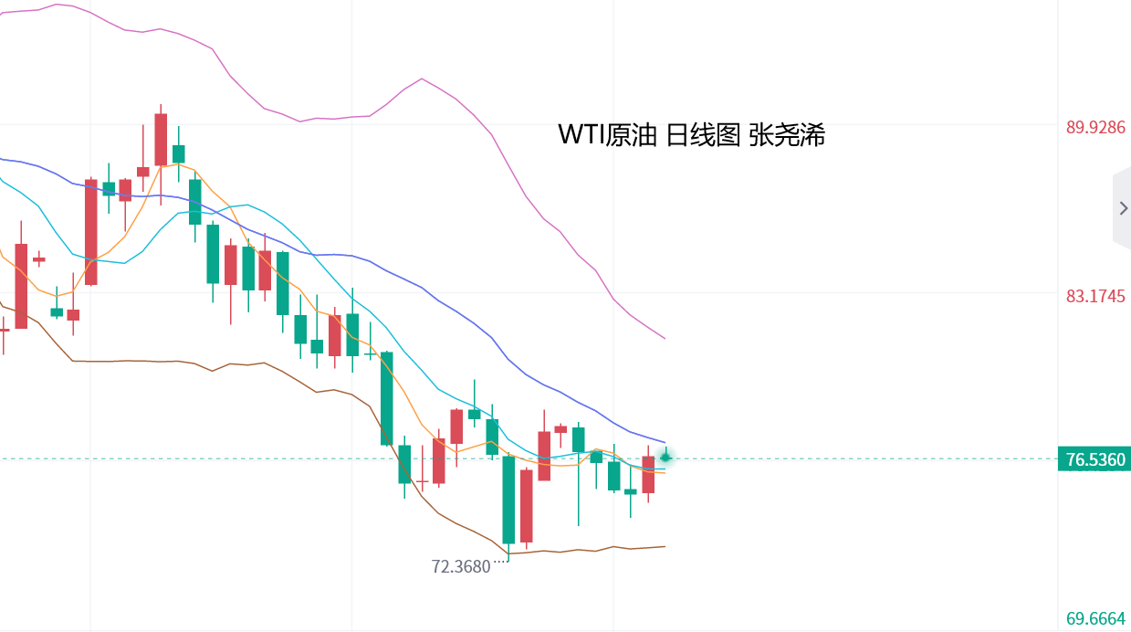 下方关注76.00及75.30美元/桶附近支撑;上方关注77.25及78.40美元/桶附近阻力;