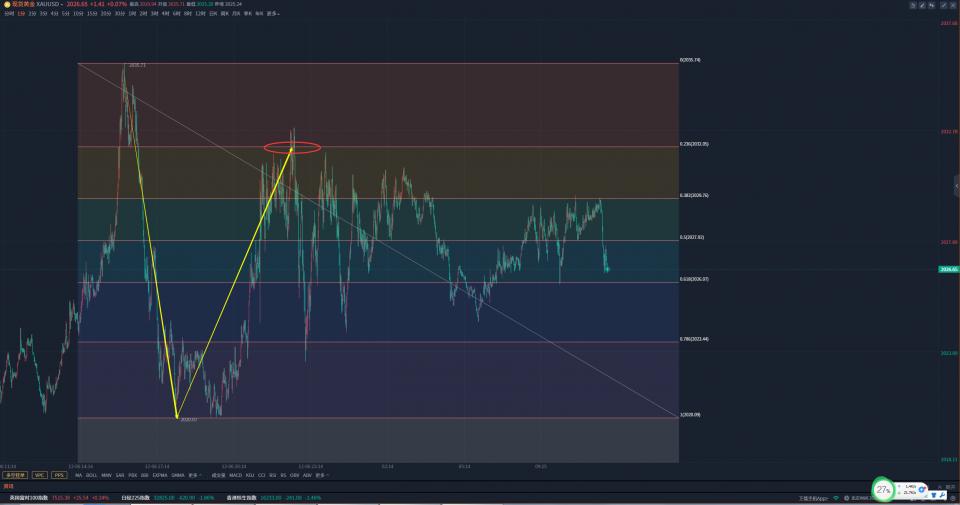 今天如果黄金没有上破昨晚高点2036附近的情况下,黄金回踩到了2016附近看涨,防守2006,目标10到20个点。如果黄金直接上破了2036昨晚高点,那么黄金只能等上方重要压力看跌,黄金走势是不断发展运动变化的,我们也应该根据黄金的结构变化,一眼看破其中玄机,然后不断调整自己的分析方案,要做到随机应变,游刃有余。更多更具体的分析,大家可以持续关注我们的分析见解。以上分析内容仅代表作者个人观点,不构成具体操作建议,据此操作,盈亏自负,投资有风险,入市需谨慎。