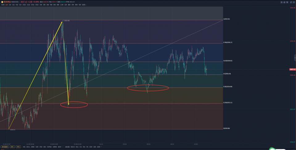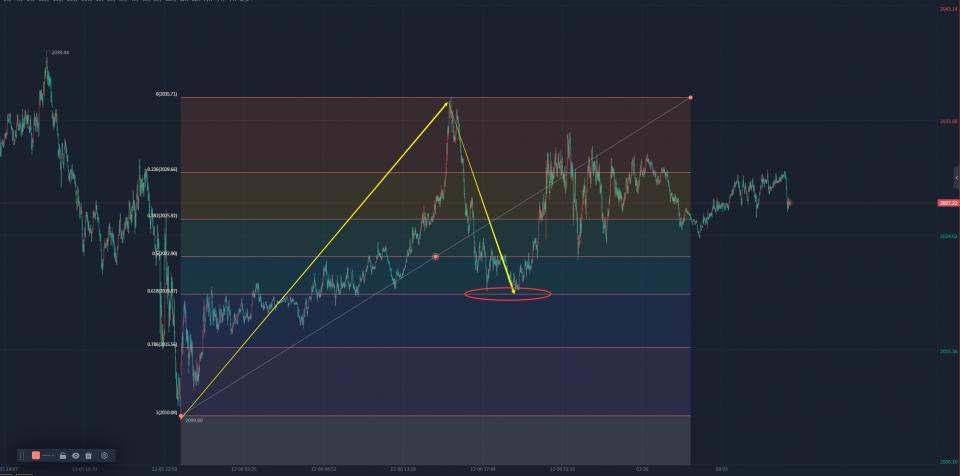 12月7日星期四,本周周一我们提出2034多单全部在2143附近果断全部出局。并提出如果2144是黄金从1930上涨的这轮顶部,那么黄金将会从2144下跌到2010附近。并且提出低位多单2143出局后,就坚决不可再多。黄金极有可能会迅速下跌。我们这一先知先觉的分析预判堪称史诗级,也得到了行情完美演绎。也有不少金友问我,为什么我们能判断出黄金会从2144下跌到2010位置。这是因为2010这个位置是1930上涨到2144这个波段的0.618关键支撑位,这也是2144下跌以来的第一个可以做多的点位。