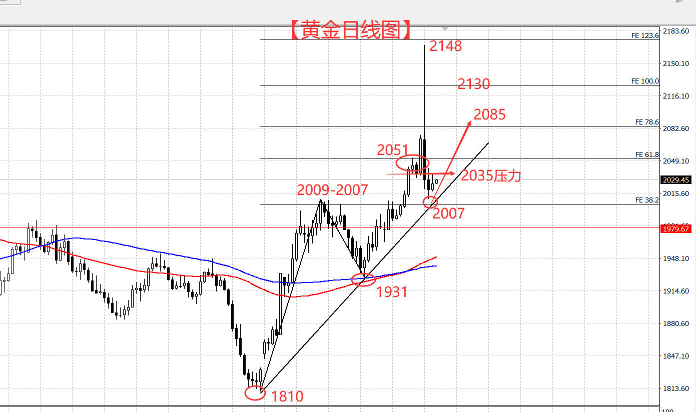 交易方面,中期继续等待2007的到来,然后做多,防守1985下方;短线2035做空,防守2039,目标2023-2020(短线)。