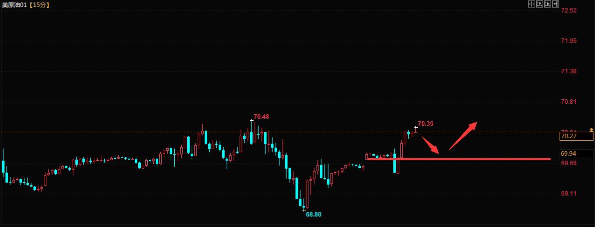 原油昨天上午我们给的70.00空单持有到22点,行情也没有回落的迹象,保本离场后凌晨居然走了回落。