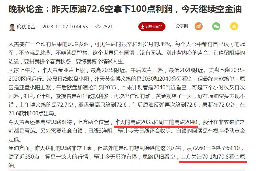 晚秋论金:昨天黄金2039空拿下7美元利润,今天黄金原油看涨