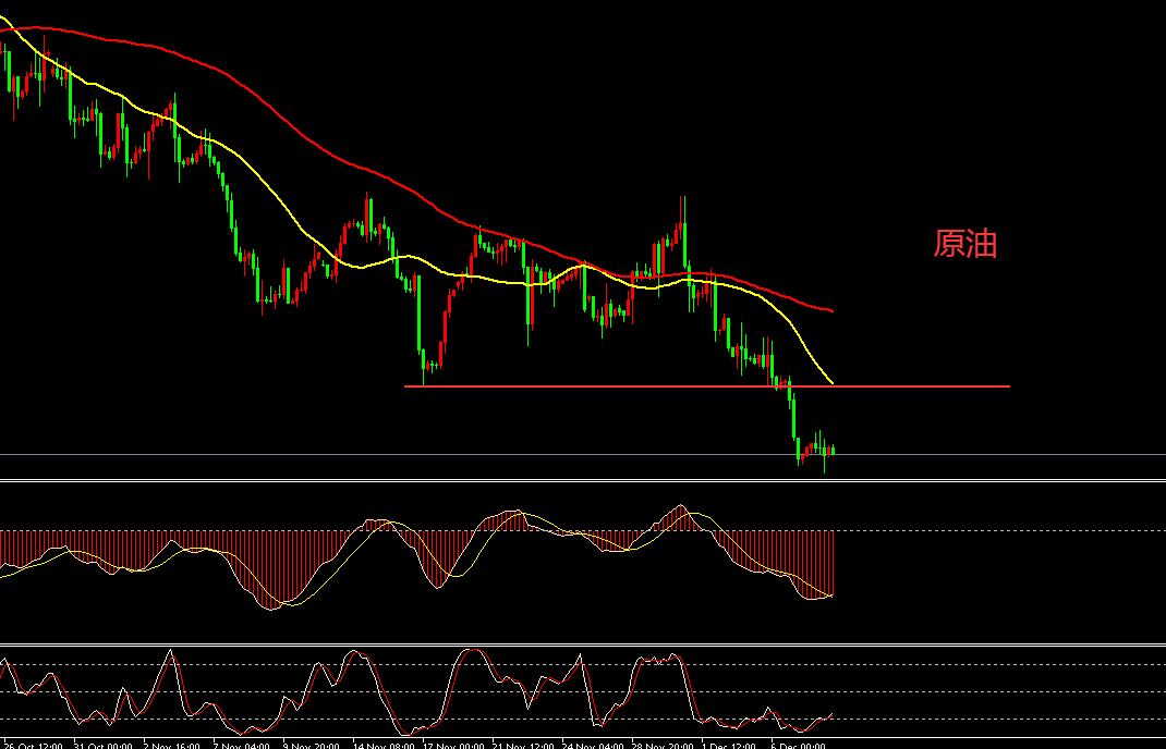 原油昨日十字星K线整理,惯性探低后收盘在中性位置,没有进一步收低,日线连阴下挫后开始轻微低位震荡修正,不过反弹的空间暂时还没有形成止跌,目前只是看局部修正蓄势。日K线结构依旧偏空。
