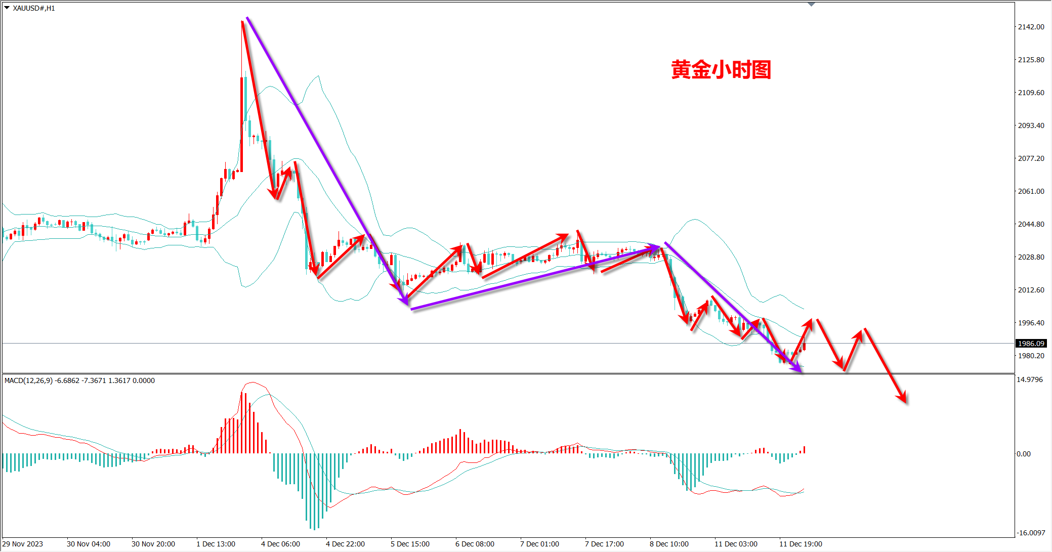 黄金弱势阴跌,反弹现在已经遇阻30分钟布林上轨压力,而且两次都收到1990的压制!遇阻后将会开启新的下跌!趋势下跌不言底,而且本次波段下跌目标远未达成,下方真正的支撑是日线布林下轨1950一线!