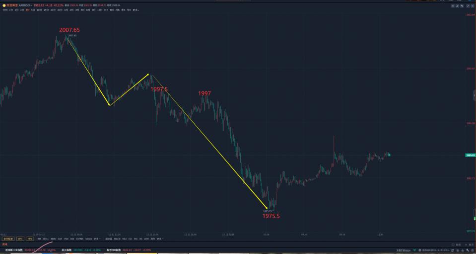 12月12日星期二,本周周一我们再次精准预判了黄金的走势,上周周末我们就提示周一早上要起早,空单要跑步进场。最终早盘黄金最高反弹到了2008附近,到了我们的看跌区域附近开始下跌,黄金从2008最低下跌到了1991附近,下午欧盘我们再次提出黄金从1991反弹到了1997继续看跌,我们这个分析预判再次精准拿捏了黄金走势,黄金从1991反弹到1997后开始下跌,昨晚黄金最低下跌到了1975附近。盘中我们特意强调一定不能看涨,只可以等反弹后继续看跌。晚上美盘我们分别提出1991继续看跌,1987继续看跌到1978附近。最终昨晚黄金最低跌到了1975附近。我们昨天再次精准收割了华尔街。今天黄金怎么看,以下是我们的独家分析