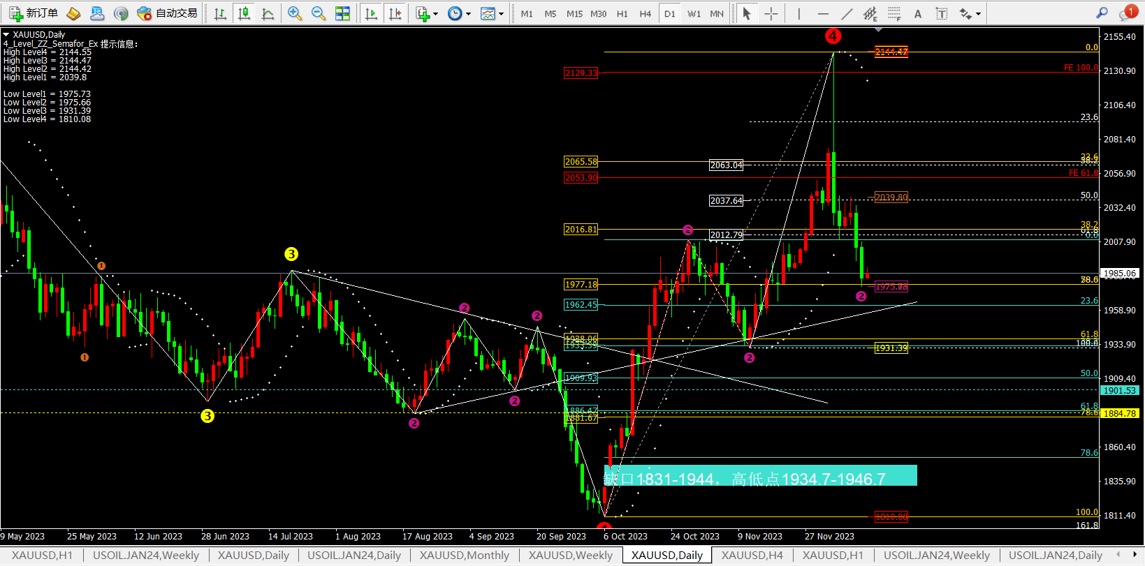 比较可惜的是昨日2002-03空单踏空没有给机会,但是1975-78多单反弹完美到达1990附近。