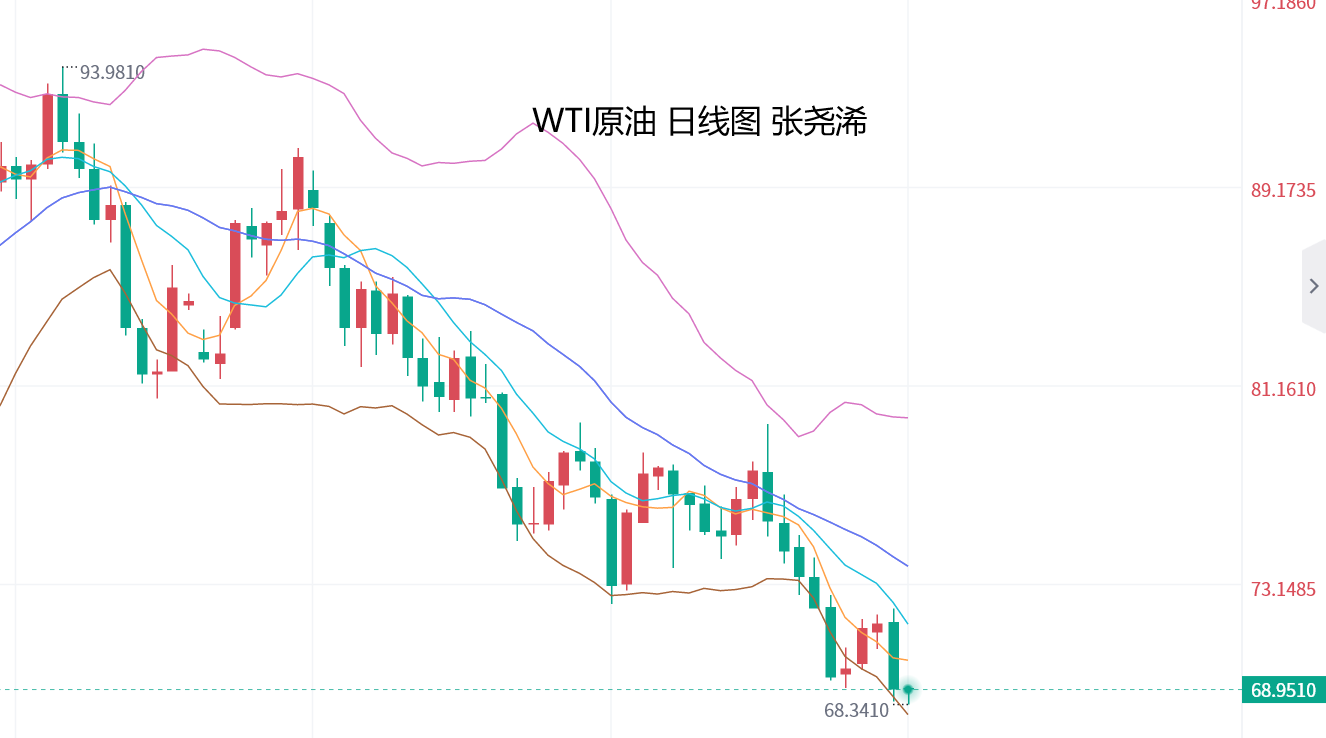 上方关注69.90及71.00美元/桶附近阻力;下方关注67.80及66.40美元/桶附近支撑;