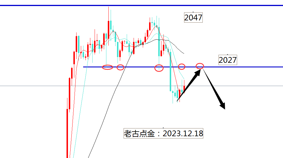 上周的黄金杀了一个回马枪,多头没有想的那么弱不禁风,多头的反攻是因为美联储公布的利率结果导致,市场走了一个大预期给多头强有力的支撑,不过该数据老古认为是短暂的,它不可以长期支撑黄金多头,周线的的小阳线上面带了很长的上影线,这周多头如果不可以站上2047,那么周线的大顶信号依然有效,本周多空还会来来回回博弈,来回洗是必然,我们看清楚大方向就好,大周线趋势老古还是看跌,看周线2144的大顶带来的深度调整,短线今天我们先高空看跌。
