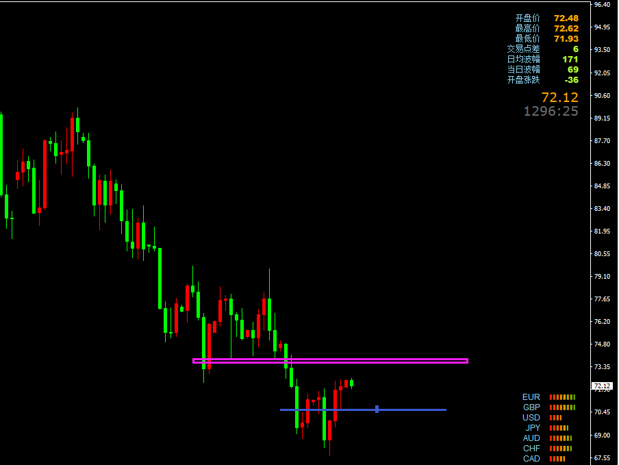 原油首次触及73附近空,防守73.7,看71.6下方,回踩71.3/4多,防守70.5,目标看73附近