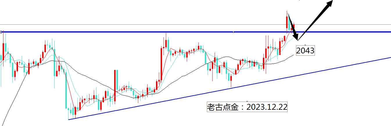 昨天晚上的半夜黄金终于突破了2047的震荡压力点,这两天我们多空通通吃肉2030多和2034多到2042,然后2043反手空也是丰收,今天的思路比较简单了,回踩就是多的机会,上破了说明多头获胜了,形态上看周线基本都是一个修复行情,如果今天周线收阳线那么后期的多头还有一段动力继续冲击,甚至有可能再次朝之前的高点进军,周线级顶的信号目前还没有破坏,短线我们需要知道大的方向,这样操作起来才会如鱼得水。