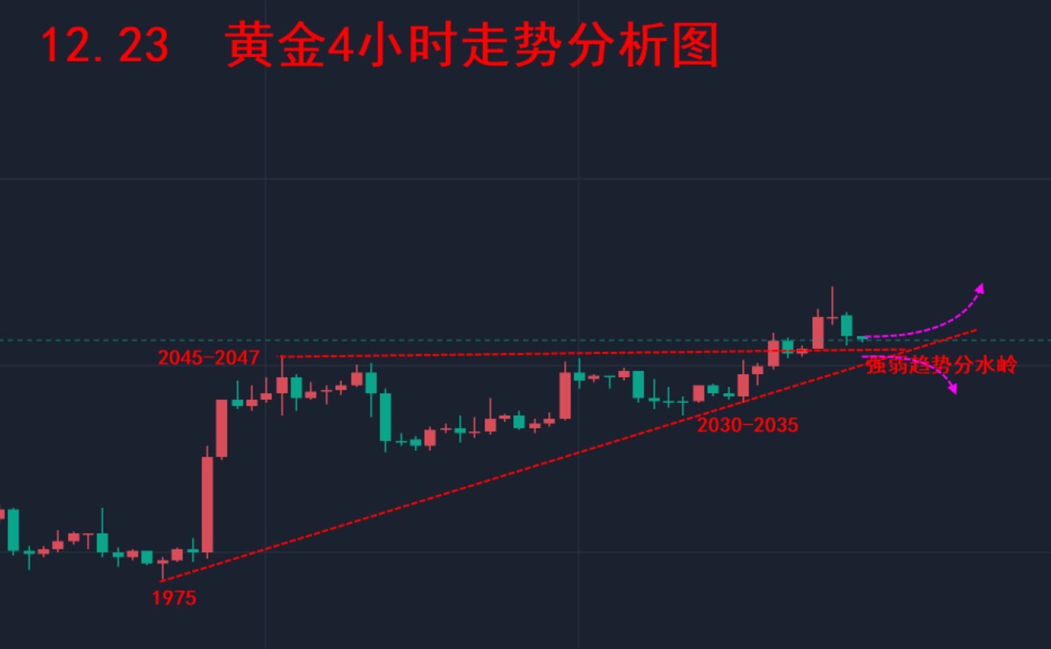 综合起来:周一继续休市一天,好好养精蓄锐;正常作息,放在第一位;第二:周二开盘的关注点在回踩支撑2045-2047的稳定性,能否稳定,至关重要;第三:看日K的指标是粘合二次金叉还是死叉。【但是笔者预计在元旦,年底,都会逐步震荡向上;在第一季度,第二季度,金价下行,但是2024年有点特殊,因为美联储加息和降息的这个基本面在里面;具体,后面也是边走边看的了】
