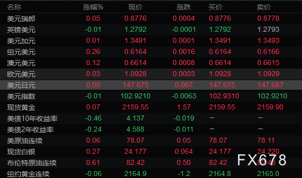3月13日欧洲时段6大货币对、美元指数及黄金阻力/支撑位