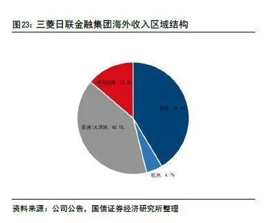 从三菱日联和三井住友海外收入结构来看,日本银行业主要是加大了美国以及亚洲区域布局,主要是这些区域经济仍维持了较好增长,利差保持在较好水平。