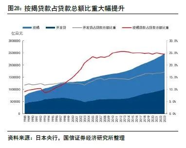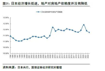 贷款结构:个人贷款低速增长,占比持续提升;对公贷款中,政府比例大幅提升,房地产规模压缩的但比重被动提升,批发零售业贷款占比持续下降。根据日本央行公布的“按行业划分的贷款和票据贴现”数据,1994-2005年在对公贷款压缩的情况下,个人贷款仍保持了年化约2.8%的小幅增长,占贷款总额的比重自1994年末的15.9%提升至2005年末的27.5%,此后一直保持在约27%的稳定水平。对公贷款中,为了刺激经济,地方政府贷款规模和占比持续提升。受房地产泡沫破灭冲击,开发贷规模在1990年代中后期到2000年代初有所下降,但由于中小企业抗风险能力更弱,批发零售业贷款规模压缩更严重,因此房地产贷款占比持续提升。日本房地产对实际GDP的贡献度也并没有出现下降,这也表明了房地产泡沫经济破裂后,日本并没有找到新的增长引擎。