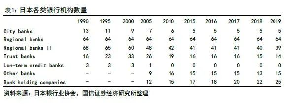 据日本银行业协会统计统计,日本前五大银行总资产份额从1996年的38.8%提升到了2017年的64.4%。同时,为了提升竞争力,地方银行业加大了合并的进程,区域性银行II从1990年的68家减少了现在的39家。
