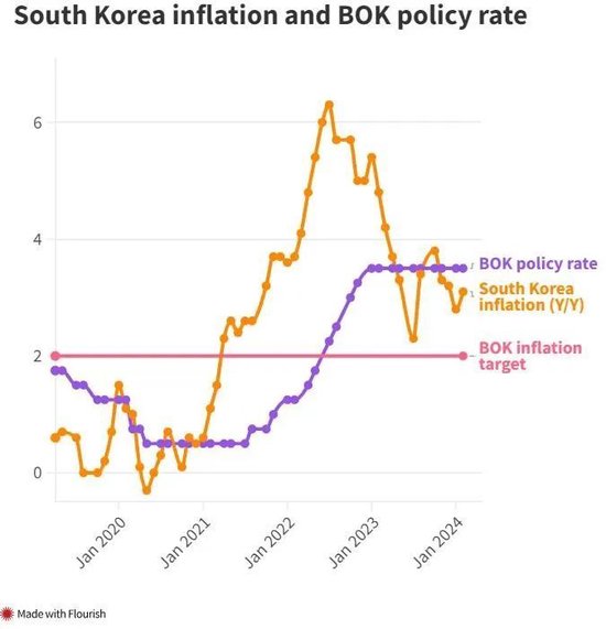 2月下旬,韩国央行将利率稳定在3.5%。据报道,韩国央行行长表示,在通胀高于目标水平的情况下,大多数董事会成员仍然认为讨论任何降息“为时过早”。