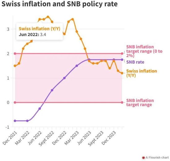 瑞士国家银行目前的政策利率为1.75%,央行的通胀目标范围在0%至2%之间。根据LSEG的数据,3月份降息25个基点的可能性超过40%,这将使瑞士国家银行的关键利率降至1.5%。
