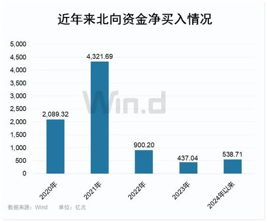 Wind数据显示,本周二北向资金大幅净买入42.44亿,一举带动今年以来北向合计净买入突破500亿,达523.04亿元,大幅超过2023年全年净流入437.04亿元。周三北向净买入继续,今年以来合计净买入至538.71亿元,超过去年100亿。