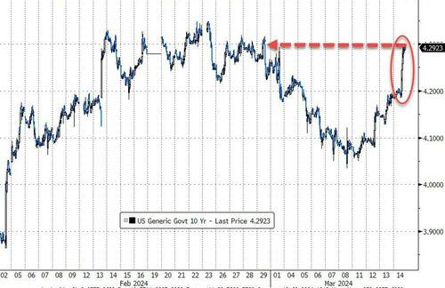 财联社3月15日讯(编辑 潇湘)美国国债收益率周四进一步攀升,隔夜公布的美国2月份PPI再度超出预期,续写了本周早些时候CPI数据的火热势头,这也进一步增添了美联储是否会如市场普遍预期的那样在上半年降息的不确定性。