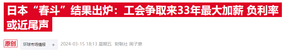 媒体分析称,日本央行本次能有这么强退出超宽松的信心,主要是由于上周公布的“春斗”(春季劳资谈判)统计结果:日本最大工会Rengo争取到的年度工资涨幅达到5.28%,高于前一年的3.8%,更创下30年来最大涨幅。