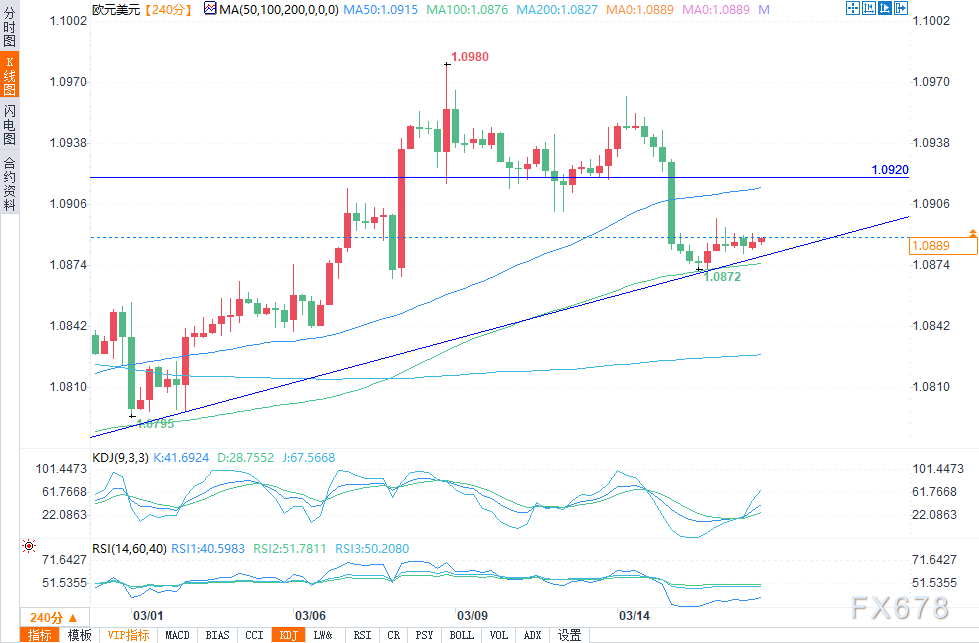 汇通财经APP讯——欧元/美元在1.0980的阻力位未能持续上涨后开始向下修正。目前,它在4小时图上找到了1.0880至1.0885区间的支撑,该区间包括100期简单移动平均线和一条看涨趋势线。