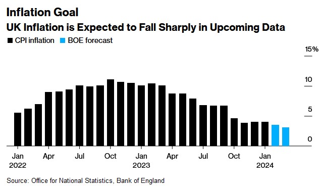 食品和商品价格降温将有助于推动通胀率回落,而能源价格的下降将推动通胀率在4月出现更显著的下降。经济学家预计,到4月,通胀率将跌破英国央行2%的目标。不过,即使这样目标近在眼前,英国央行可能也不愿宣布其使命已完成,预计届时将保持其政策指引不变。这表明,英国央行可能会在5月给出更多关于降息时间的具体信号。