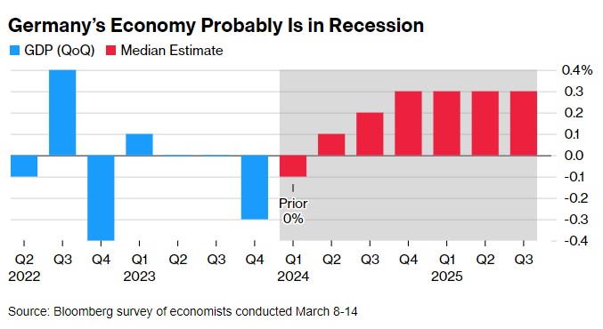 同样,德国经济部表示,大多数研究机构“预计2024年第一季度GDP将再次下降”。
