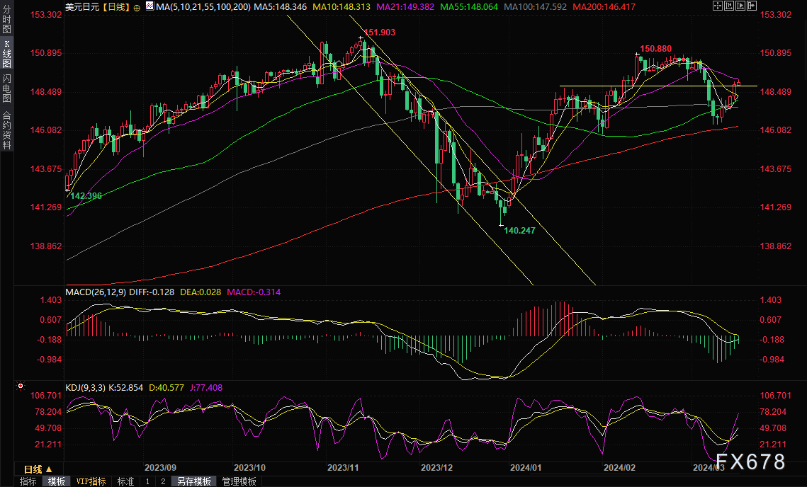 (美元兑日元日线图,来源:易汇通)