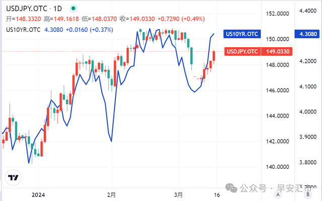 实际上,在上周四美国2月PPI超预期的当晚,一向对利差走阔最敏感的日元反而在主要非美货币中是相对偏强的,毕竟上一次10Y美债收益率在4.3%的时候,USDJPY还在150上方。小编觉得这主要是因为大家还在期待周五的春斗结果出现惊喜,所以USDJPY还强撑了一口气;而随着符合预期的涨薪结果公布,原本想要接机炒一波的日元多头们发现没什么炒作新意,于是开始止盈离场。