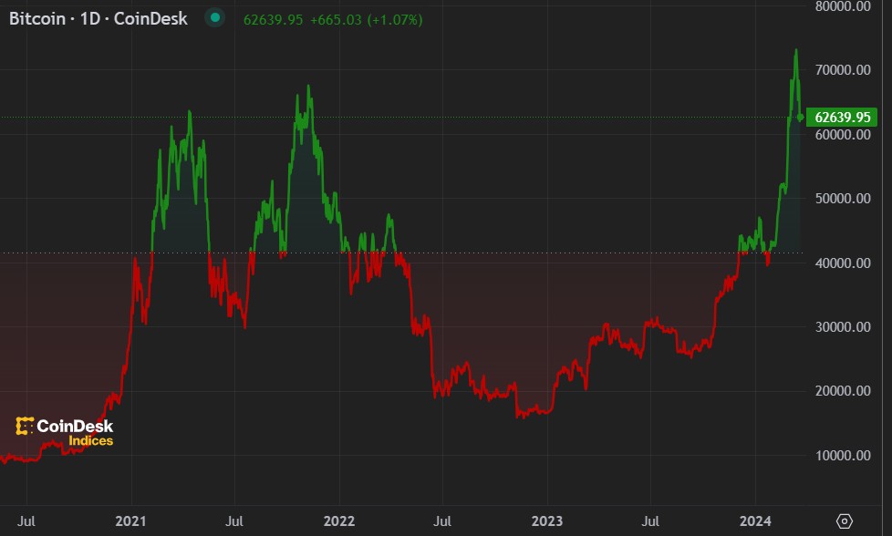 根据CoinDesk的统计数据,虽然比特币过去七天下跌了7.8%,但今年迄今为止仍上涨了50%以上。该加密货币上周创下了73,798美元的这一历史新高。