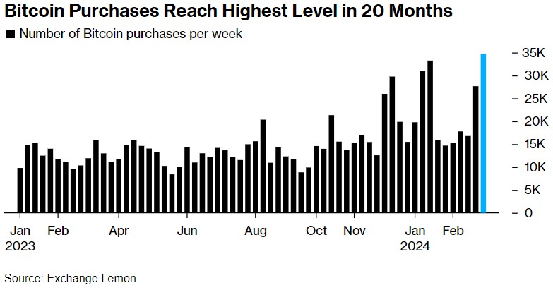 统计数据显示,在截至3月10日的一周内,Lemon记录了接近3.5万笔购买比特币的客户交易数量,是去年周度基准下的平均水平的足足两倍。这种行为与阿根廷Ripio和Belo等其他主要交易所的客户交易规模类似。