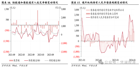 2月份,外资继续净增持境内人民币金融资产,陆股通转为大幅净流入,但外资净增持人民币债券规模环比有所收窄。