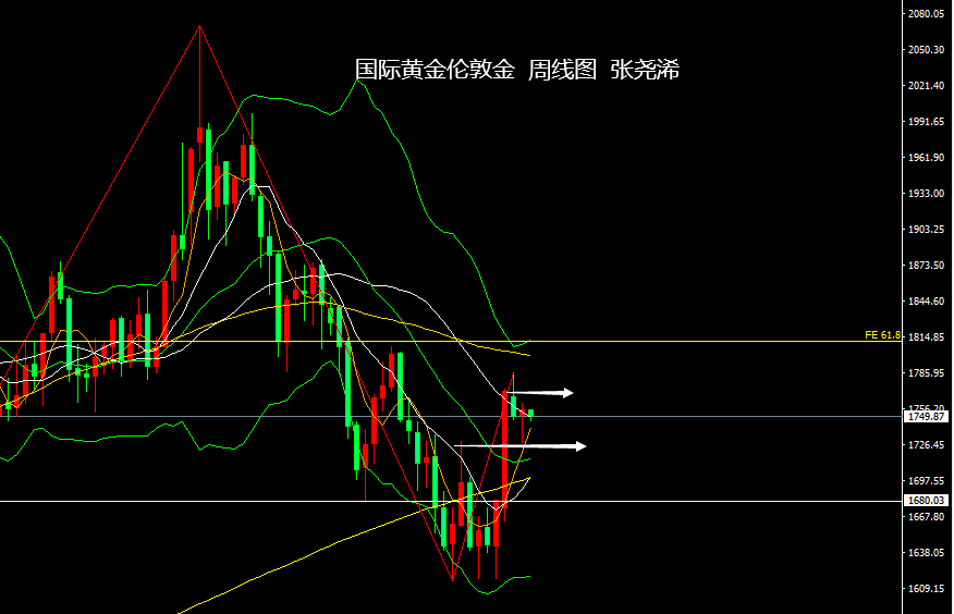 黄金市场上周:国际黄金/伦敦金触底回升收阳,相对于前周的冲高回落,有一定的回撤出尽的预期,但也不能说是再度走强,只能说将保持一定的震荡之后,偏向走强的概率较大。