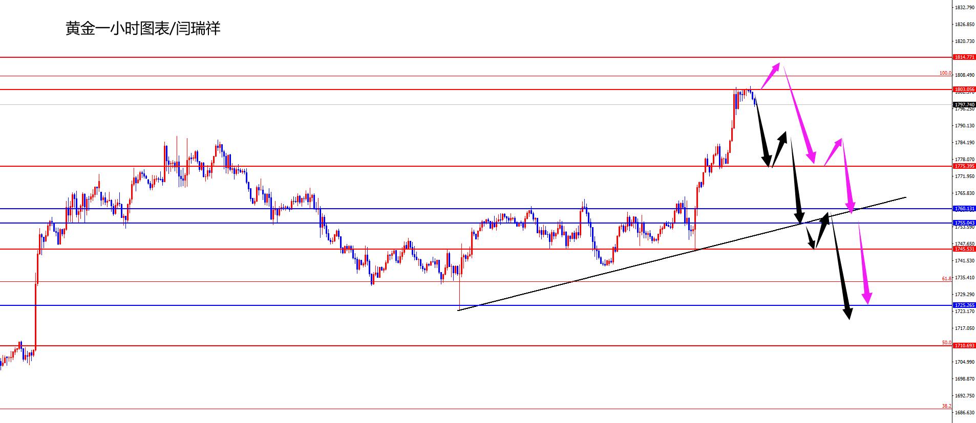黄金1814-15区间空,防守10美金,目标1775-1760-1745(昨晚已经空的持有,没有单子的还可以于1803区域先空)