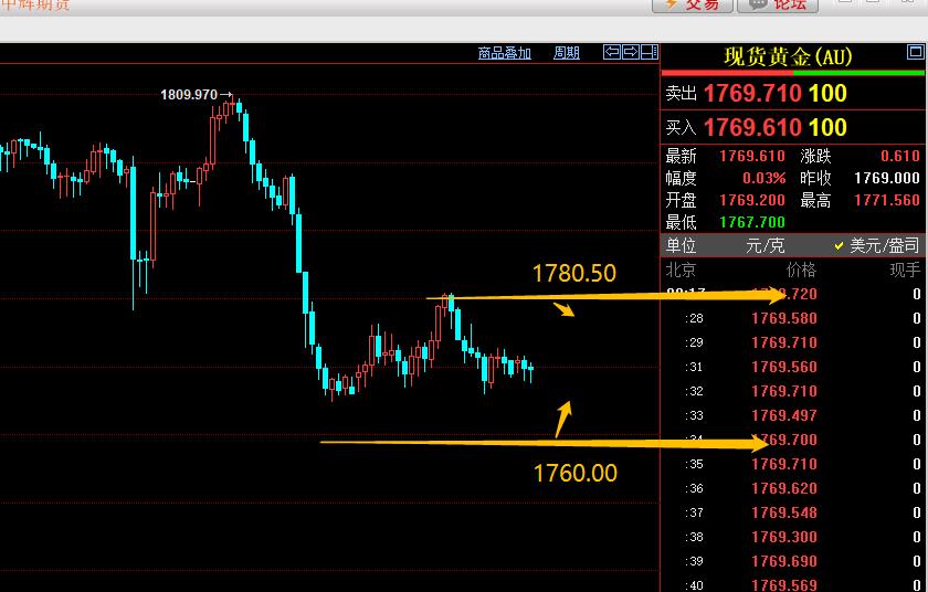 前天黄金1797.50空,昨天1780.50空,今天压力位还是不变目前还在1780.50这里。