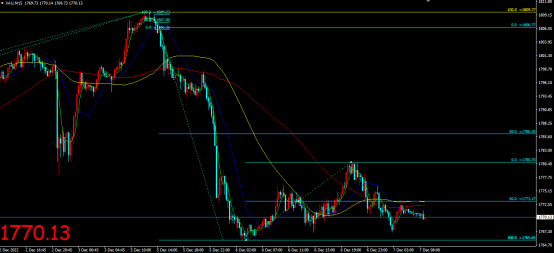 国际黄金周二(12月6日)维持震荡走势,开盘价1777.78美元/盎司,最高价1780.70美元/盎司,最低价1765.64美元/盎司,收盘价1772.40美元/盎司。