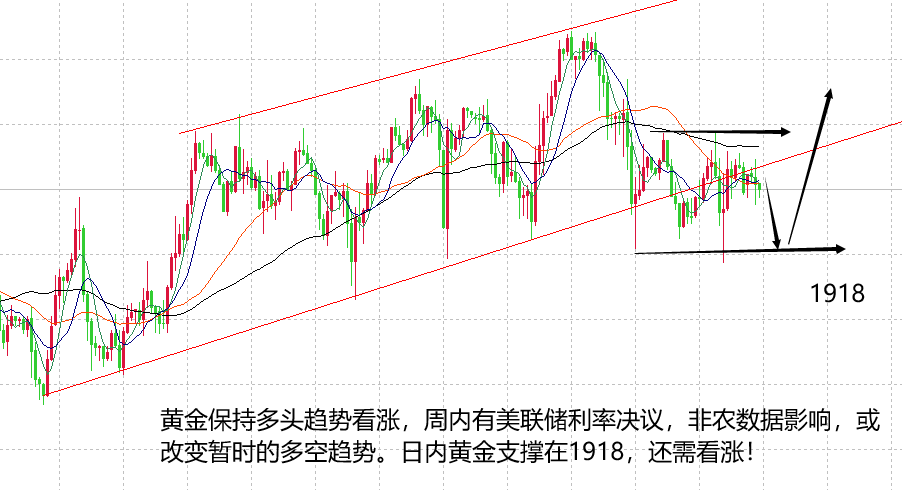 日内交易策略:黄金保持多头趋势不变,日内关注1918支撑,上方关注1935,1945高点压制。
