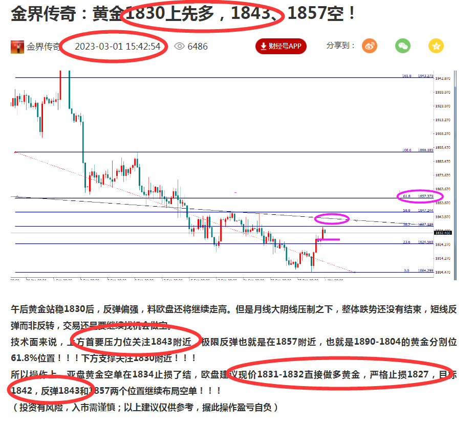 昨天黄金在站稳1830之后,我们空单止损了结。随后,欧盘调整策略,短线依托1830支撑做多,拉高1843做空,多空都完美兑现!!!